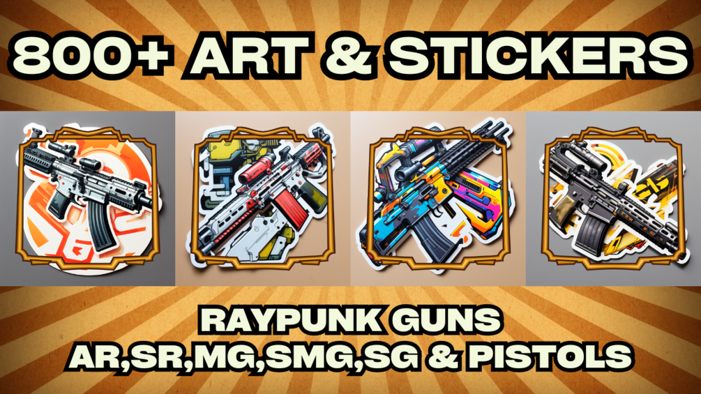800+ Raypunk Guns Art & Stickers: Blast Off to Neon-Drenched Glory!